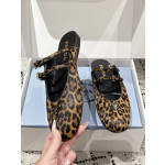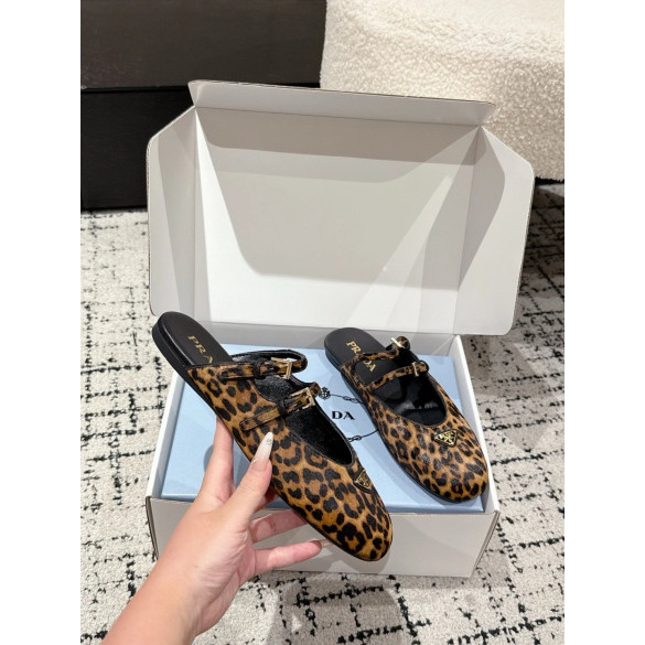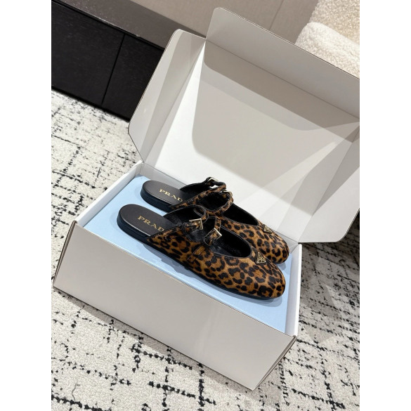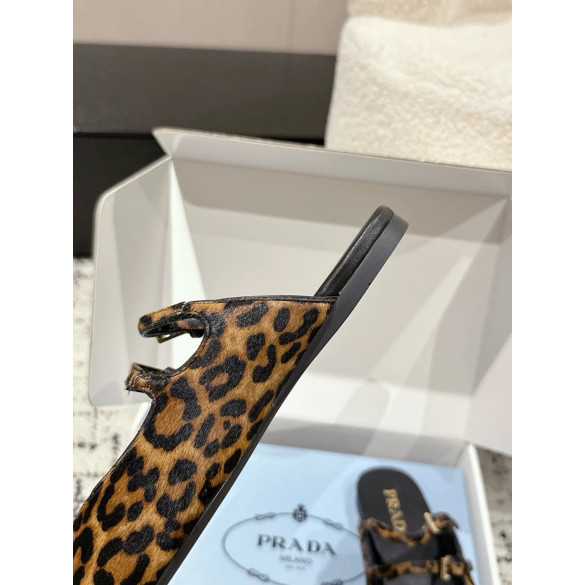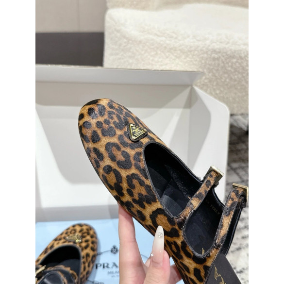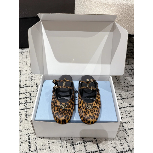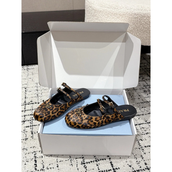 • 프라다 더블 스트랩 레오파드 프린트 발레리나 플랫 슈즈