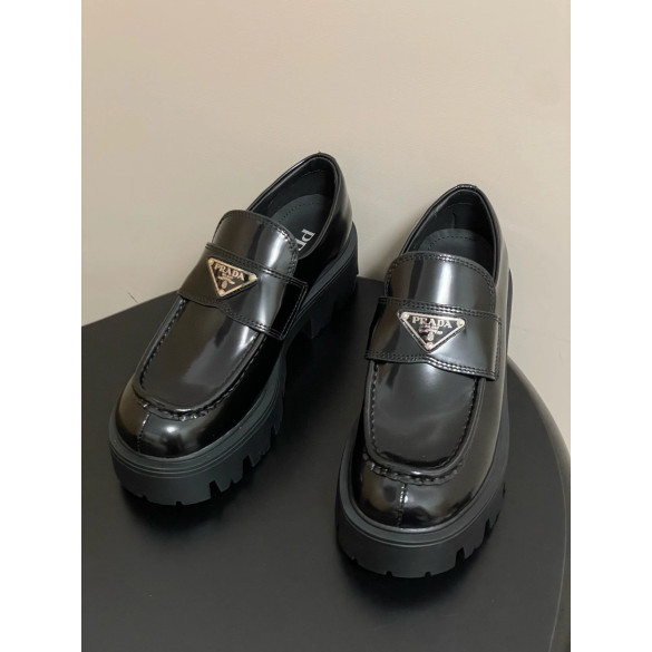 프라다 모놀리스 브러시드 가죽 로퍼
