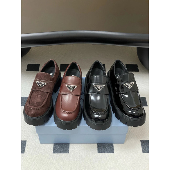 • 프라다 모놀리스 브러시드 가죽 로퍼