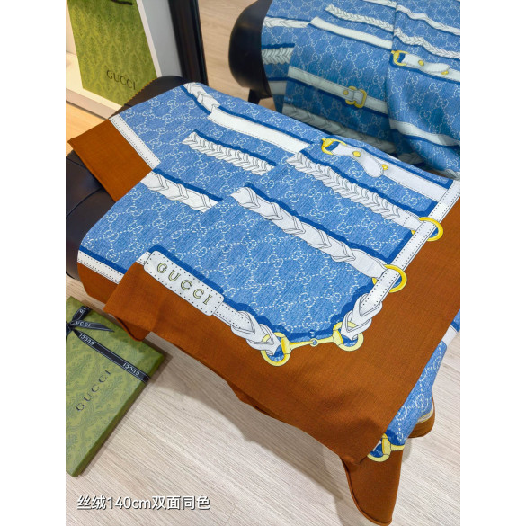 구찌 GG 홀스빗 하네스 프린트 실크 울 숄