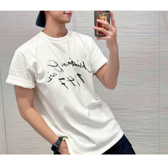 디올 핸드라이팅 1947 크리스찬 디올 프린팅 캐주얼 핏 반팔 티셔츠