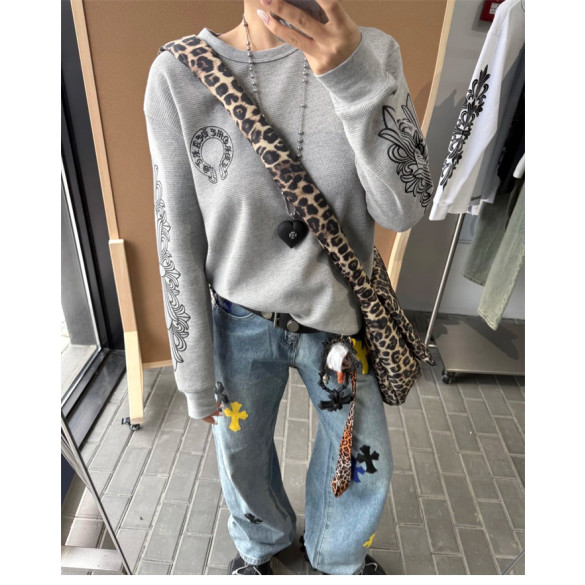 크롬하츠 홀스슈 플로럴 슬리브 와플 써멀 티셔츠