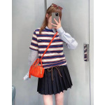 미우미우 로고 패치 스트라이프 코튼 반팔 티셔츠