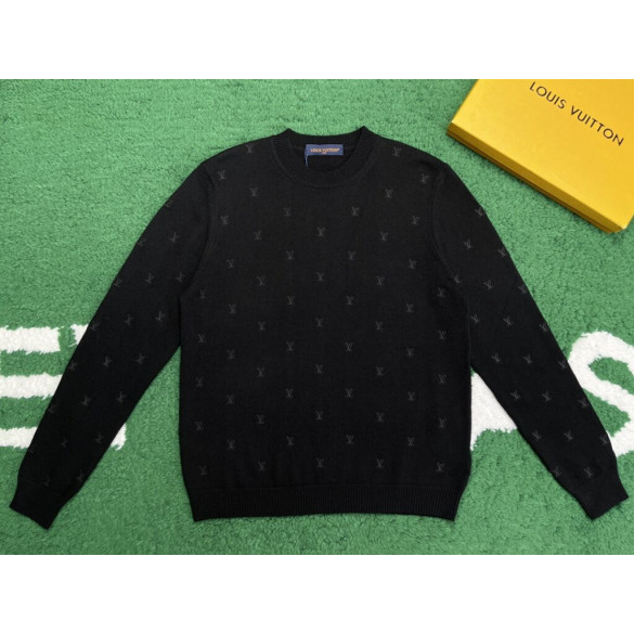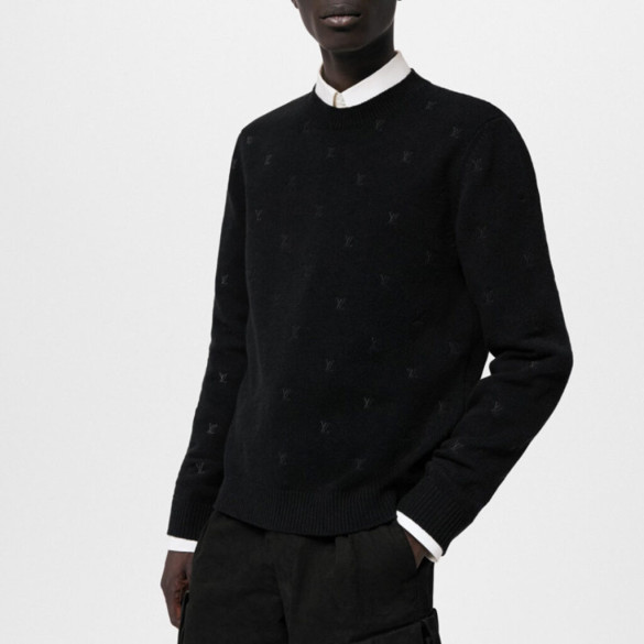루이비통 엠브로이더드 시그니처 자수 메리노 크루넥 니트 블랙