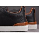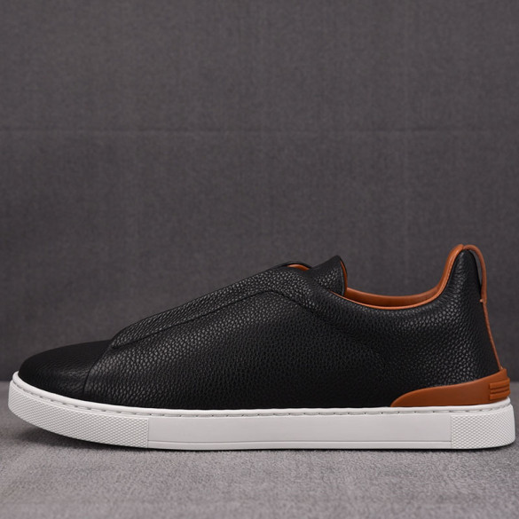 제냐 블랙 디어스킨 트리플 스티치 스니커즈