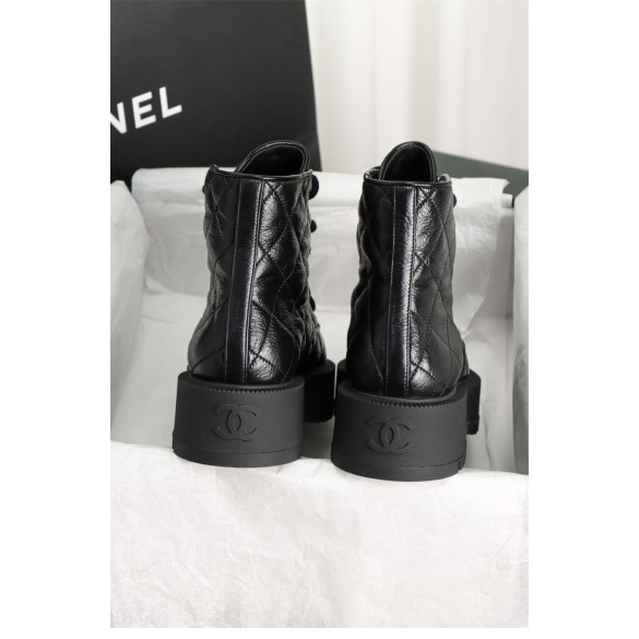 샤넬 24A 퀼팅 레더 플랫폼 컴뱃 앵클 부츠