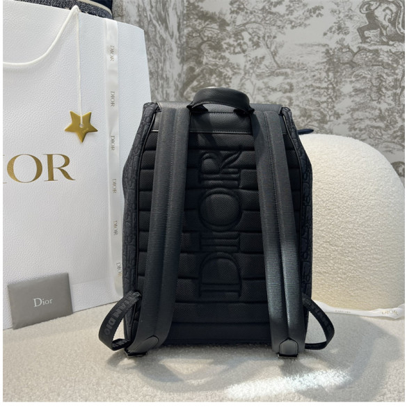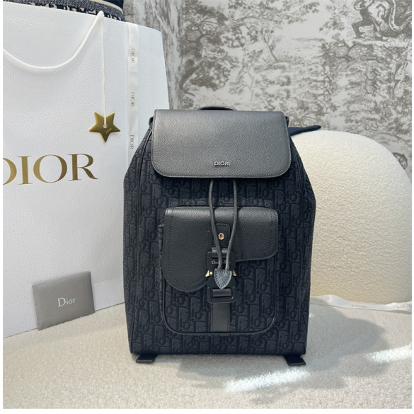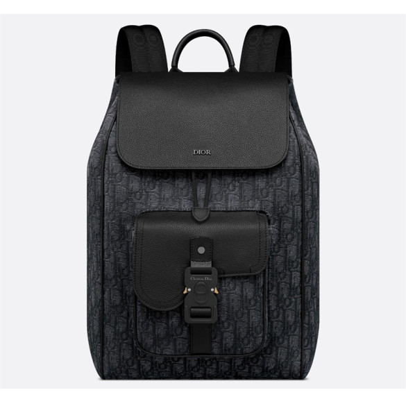 • 디올 새들 플랩 백팩 블랙 오블리크 자카드