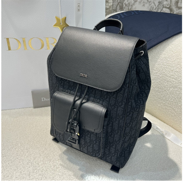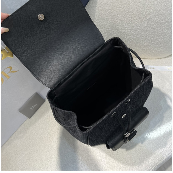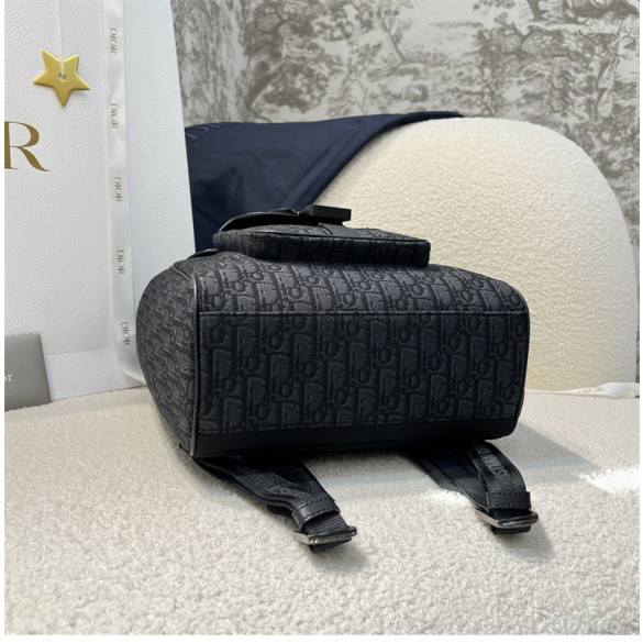 디올 새들 플랩 백팩 블랙 오블리크 자카드