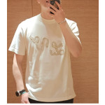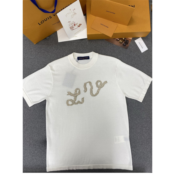루이비통 리본 LV 자수 반소매 코튼 크루넥