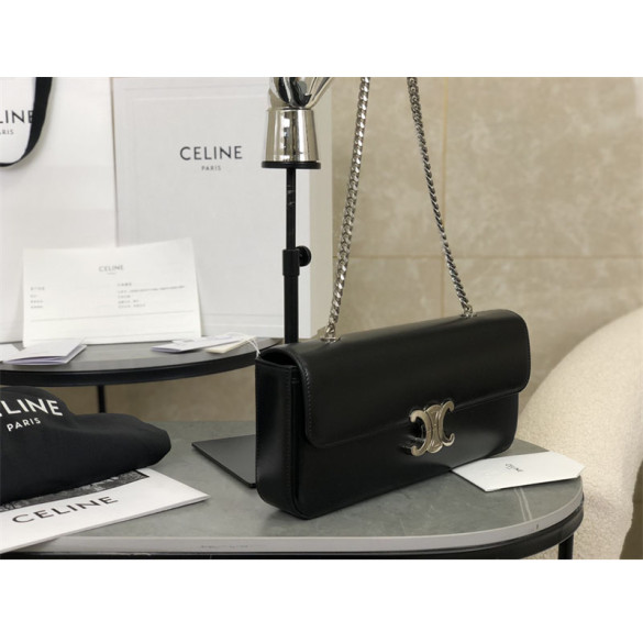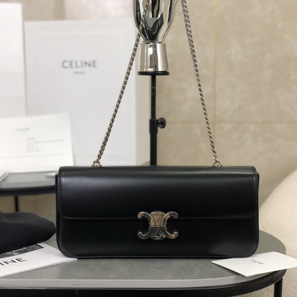 셀린느 은장 체인 숄더백 샤이니 카프스킨 블랙