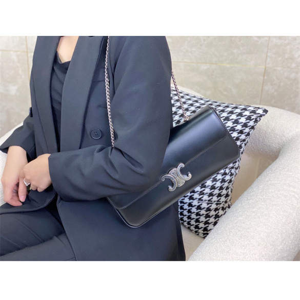 • 셀린느 은장 체인 숄더백 샤이니 카프스킨 블랙
