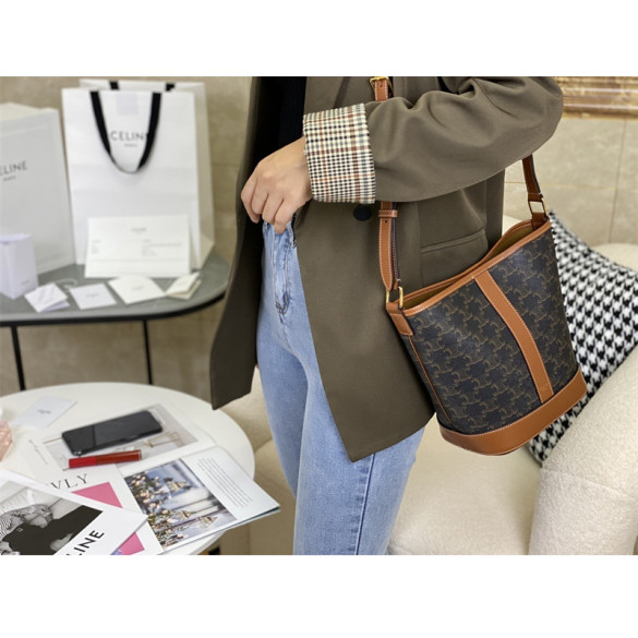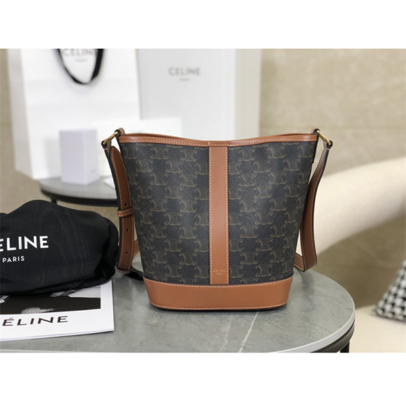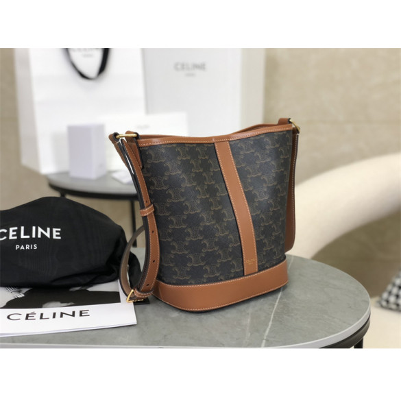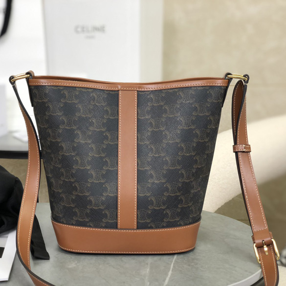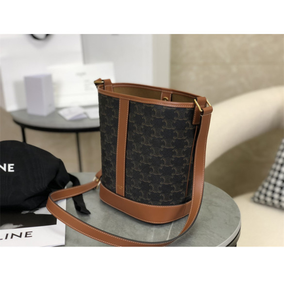셀린느 스몰 버킷백 트리옹프 캔버스 탄
