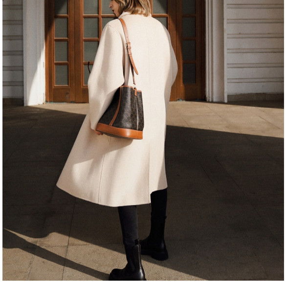 • 셀린느 스몰 버킷백 트리옹프 캔버스 탄