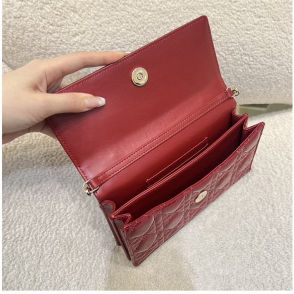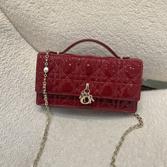 디올 미스 디올 미니 체인백 페인턴트 체리 레드 까나쥬