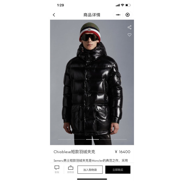 몽클레어 키아블라세 Chiablese 후드 숏 다운 패딩 자켓