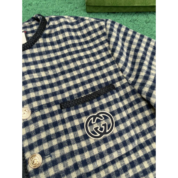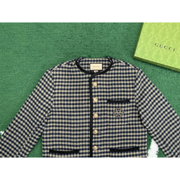 24SS구찌 인터로킹 G 울 깅엄 체크 재킷 블랙