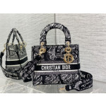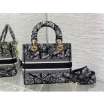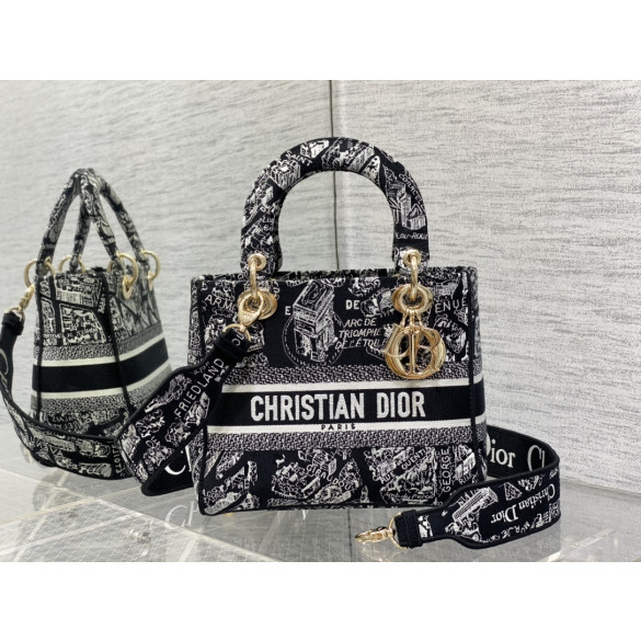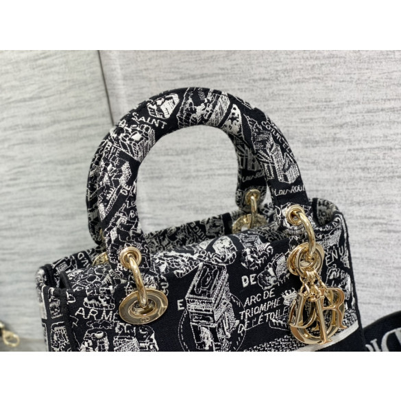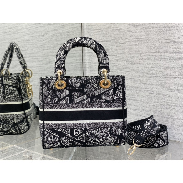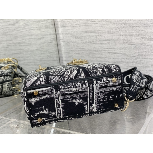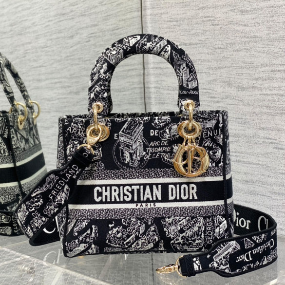 • 디올 블랙 화이트 Plan de Paris 레이디 D-LITE 미디엄 백 24*20*11CM