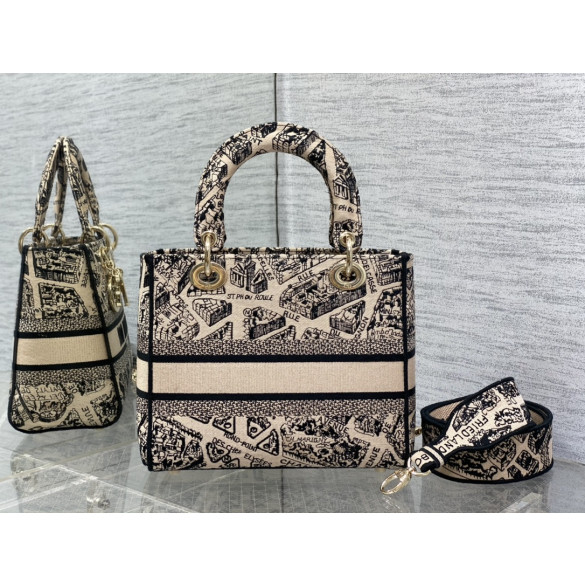 • 디올 Plan de Paris 레이디 D-LITE 미디엄 백 24*20*11CM