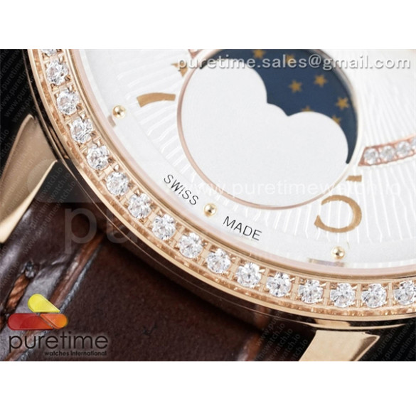 • ZF공장 랑데뷰 로골 화이트텍스쳐다이얼 가죽스트랩 Rendez-Vous Moon Medium RG ZF 1_1 Best Edition White Textured Dial Diamonds Bezel on Brown Leather Strap A935