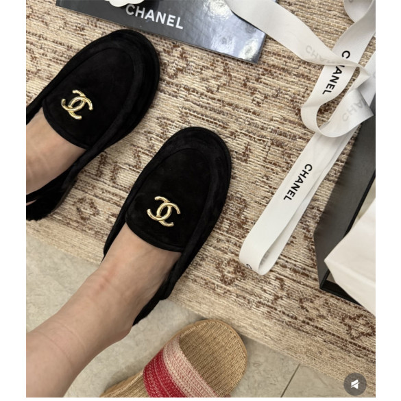 샤넬 25K CC로고 시어링 슬링백 뮬