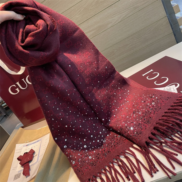 • 구찌 보르도 크리스털 장식 GG 울 스카프