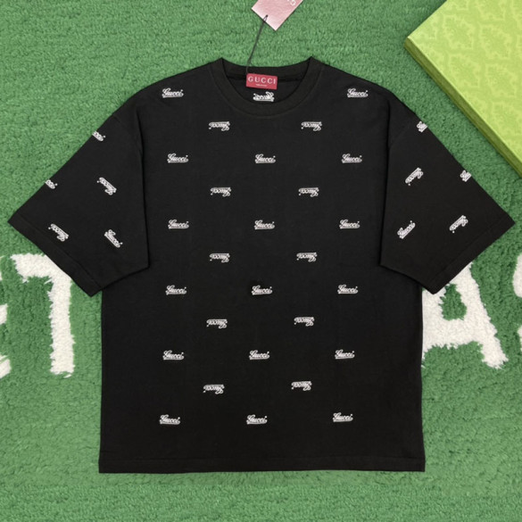 구찌 하우스 코드 자수 코튼 저지 티셔츠