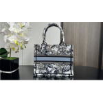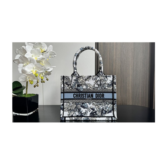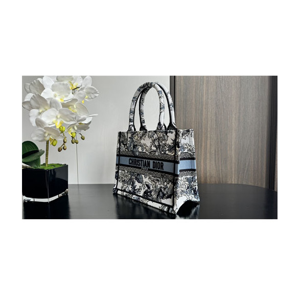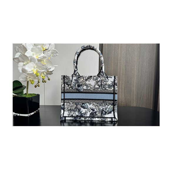 디올 북 토트백 스몰 샤돈 화이트 데님 블루