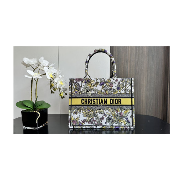 • 디올 북 토트백 미디엄 샤돈 라떼 옐로우 멀티