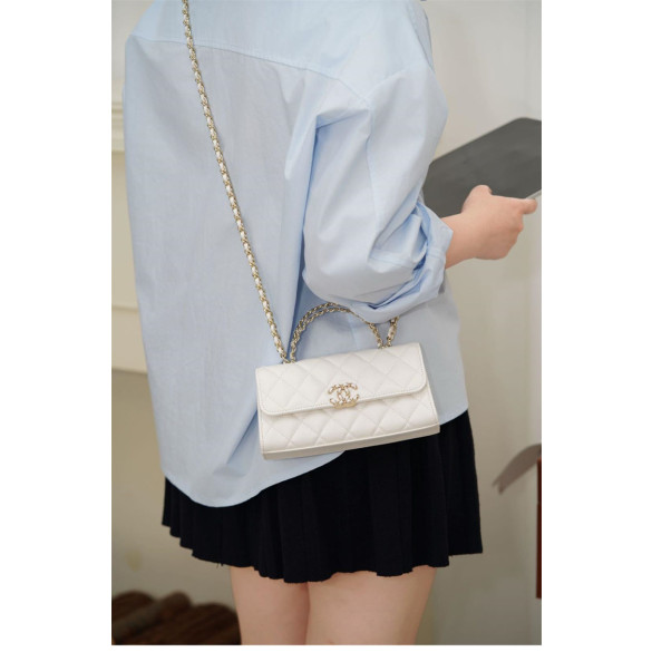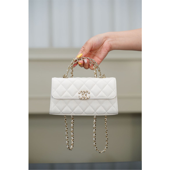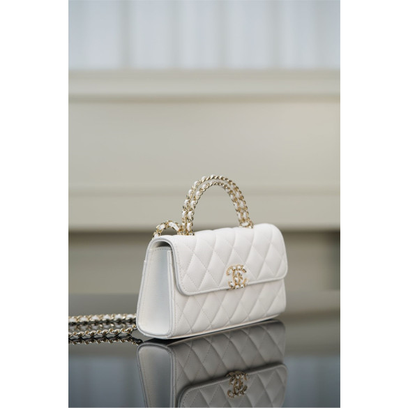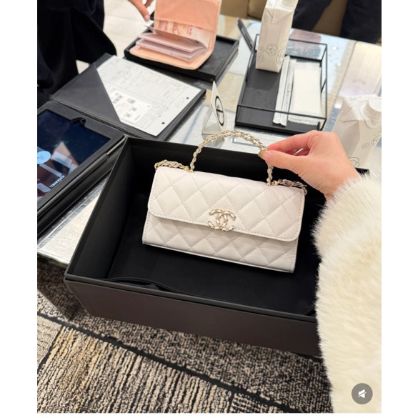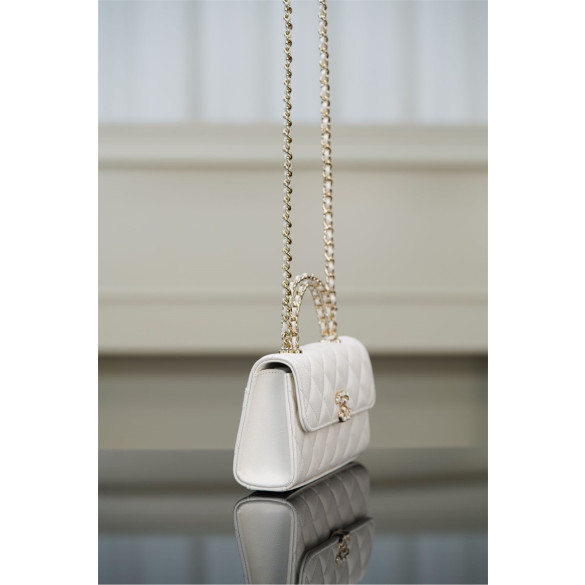샤넬 25s 캘리 탑핸들 체인 핸드 백 화이트