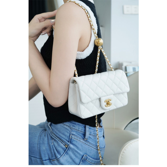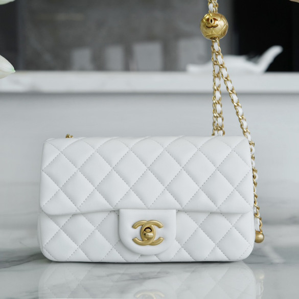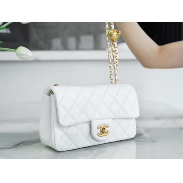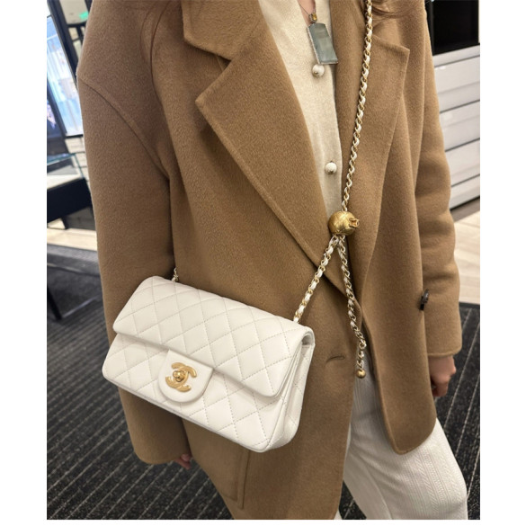샤넬 클래식 골든볼 플랩 뉴미니 화이트