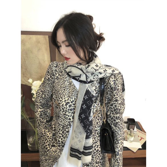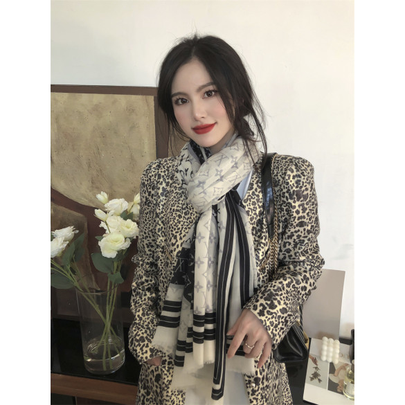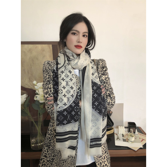 • 루이비통 모노그램 체크 캐시미어 스카프 화이트 블랙