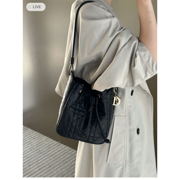 디올 D-Major 스몰 백 블랙 매크로 까나쥬 램스킨