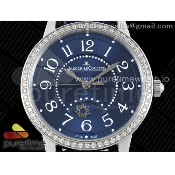 APS공장 예거르쿨트르 랑데뷰 나잇앤데이 스틸 다이아몬드베젤 블루다이얼 가죽스트랩 Rendez-Vous Night & Day SS APSF 1_1 Best Edition Blue Textured Dial Diamonds Bezel on Blue Leather Strap SA898 (#001)