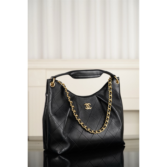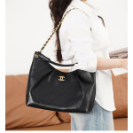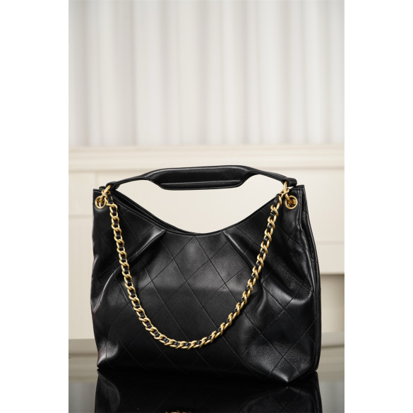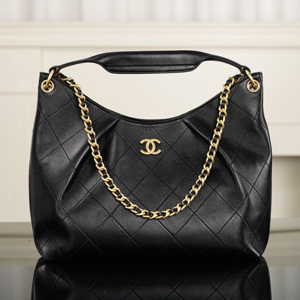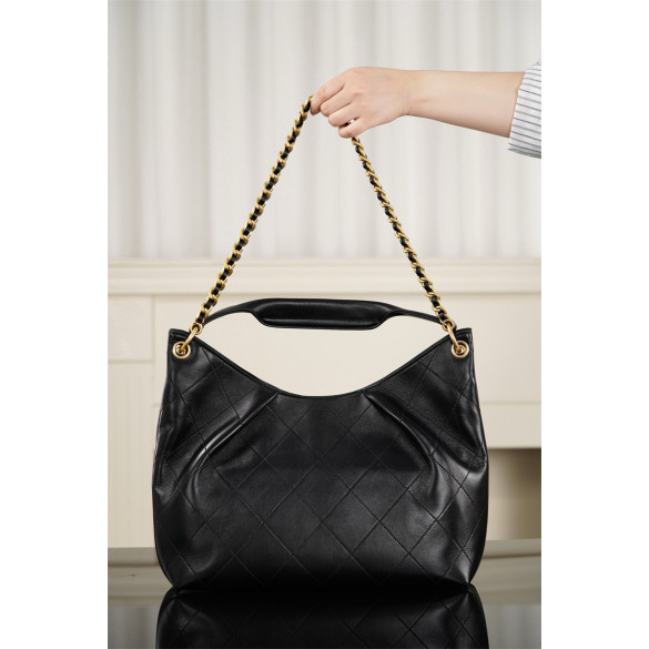 샤넬 26C 맥시 호보백 블랙 그레인드 카프스킨 골드 메탈