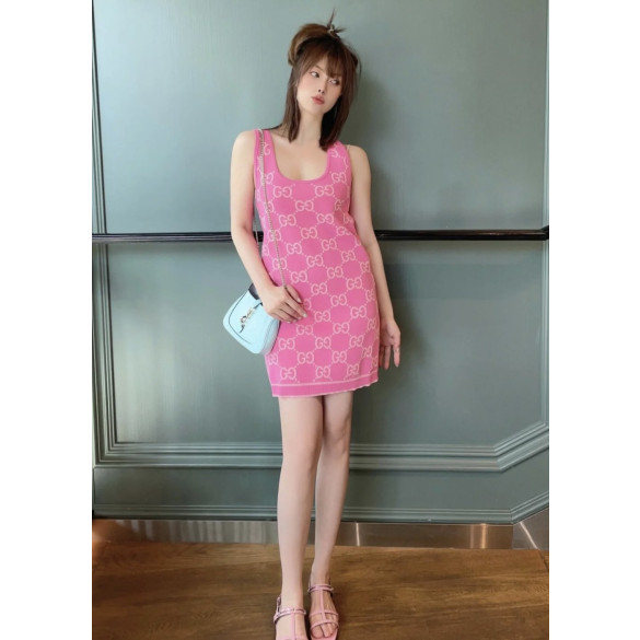 구찌 리도 프리폴 컬렉션 GG 코튼 자카드 슬리브리스 원피스