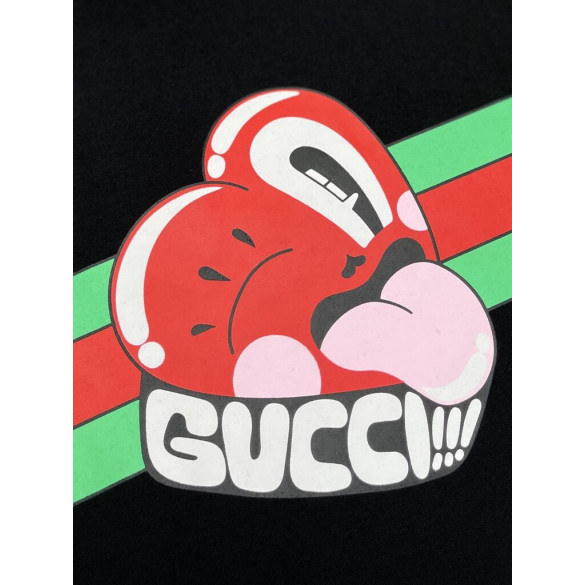 구찌 24FW 웹 하트 프린트 디테일 코튼 저지 반팔 티셔츠 블랙