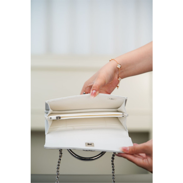 샤넬 25P 탑핸들 플랩 미니 백 화이트 실버 메탈