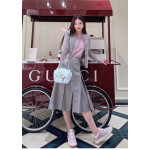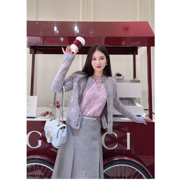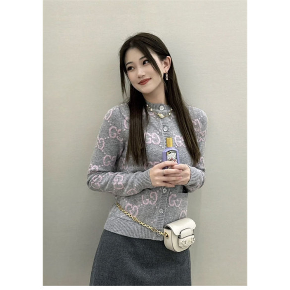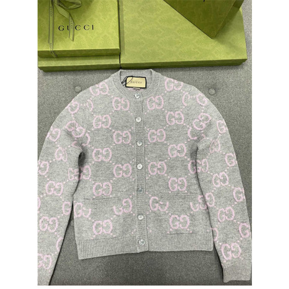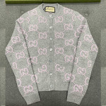 구찌 라이트 그레이/핑크 GG 니트 울 가디건
