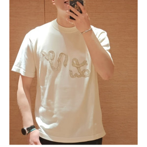 루이비통 리본 LV 자수 반소매 코튼 크루넥