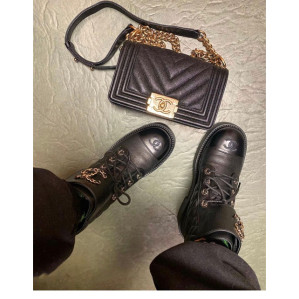 샤넬 cc로고 퀄팅 레이스업 부츠