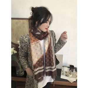 루이비통 모노그램 체크 캐시미어 스카프 오렌지 브라운