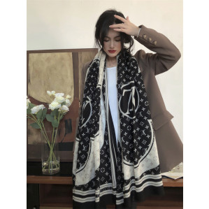 루이비통 모노그램 체크 캐시미어 스카프 블랙 화이트