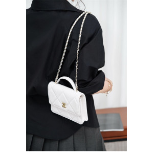 샤넬 25s 캘리 탑핸들 체인 핸드 백 화이트
