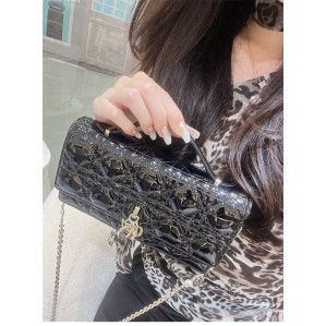 디올 미스 디올 미니 체인백 페인턴트 블랙 까나쥬