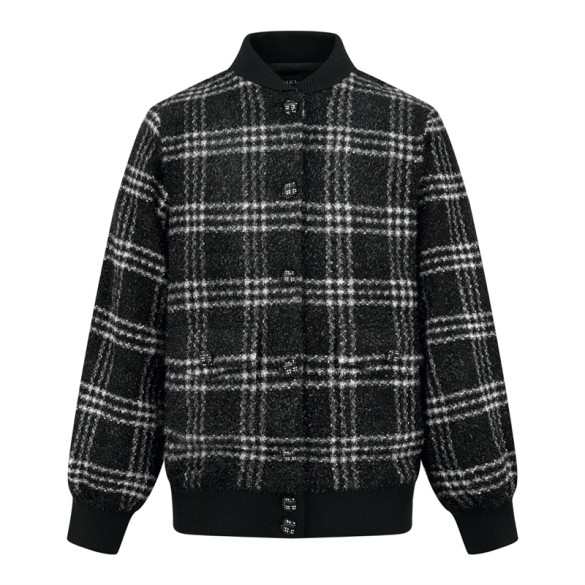 샤넬 숄카라 체크 버튼 울 트위드 자켓