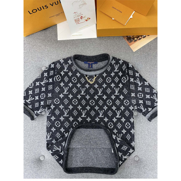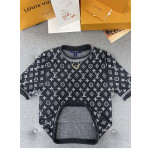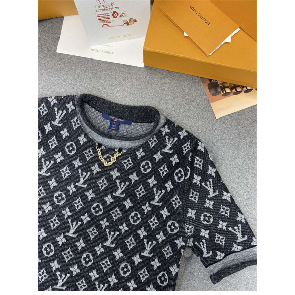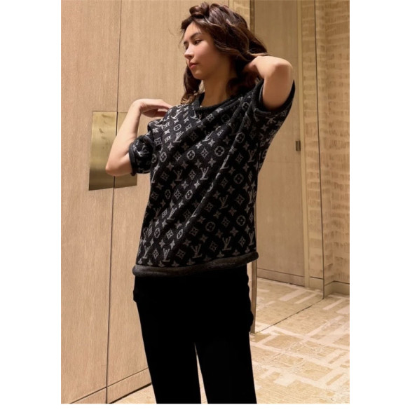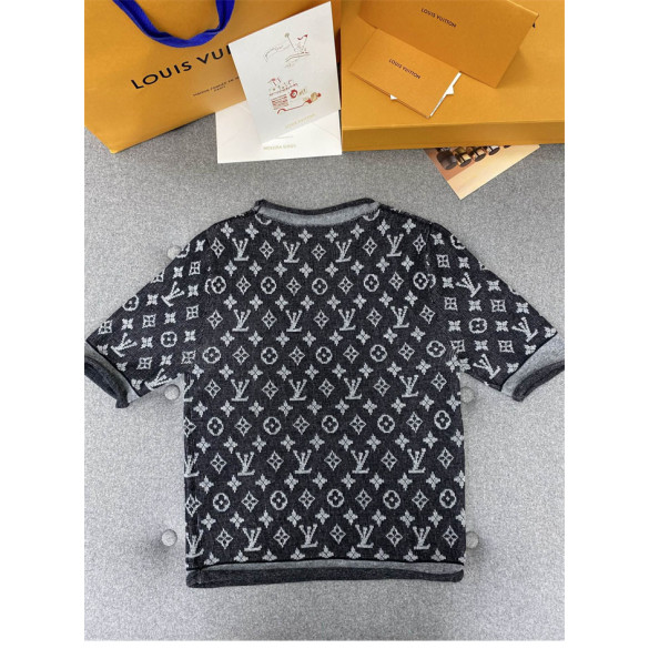 루이비통 모노그램 로고플레이 자카드 코튼 울 반팔 니트