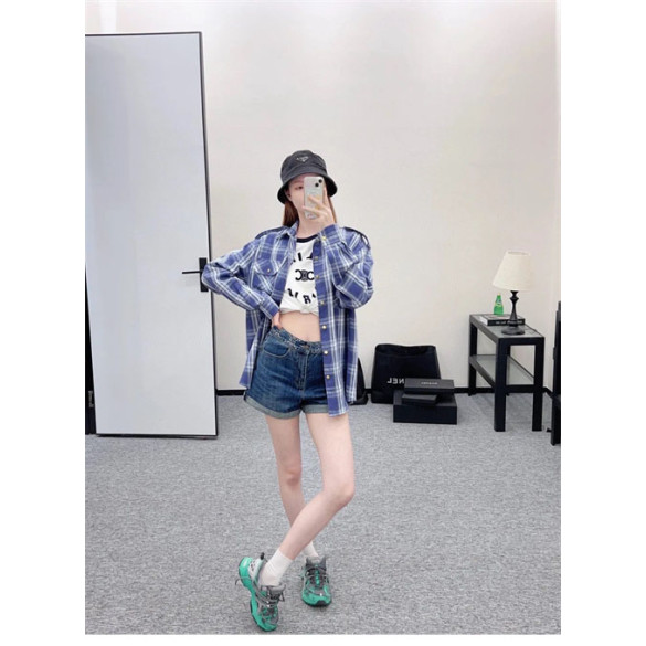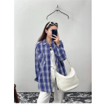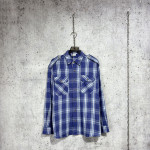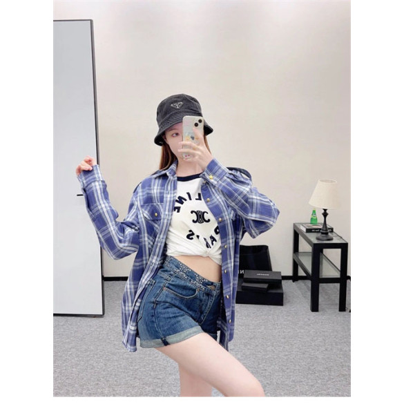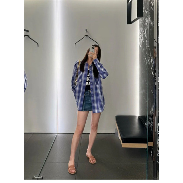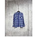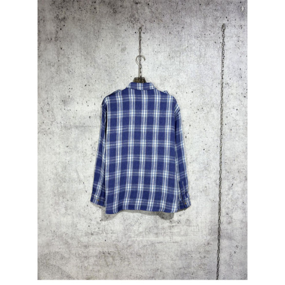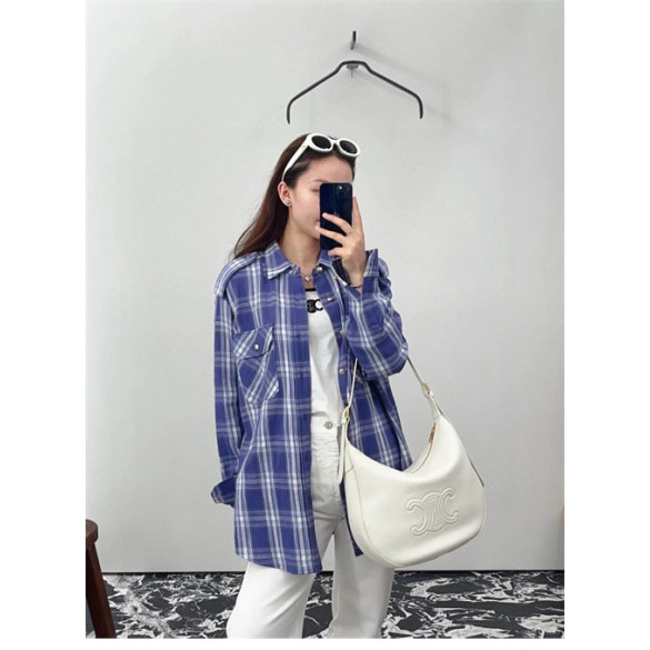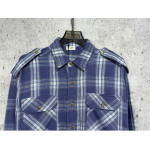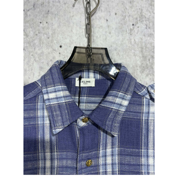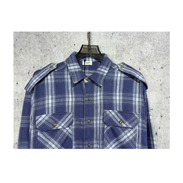 셀린느 체크 캐주얼 견장 롱 셔츠 남방 블루