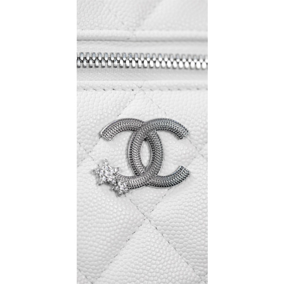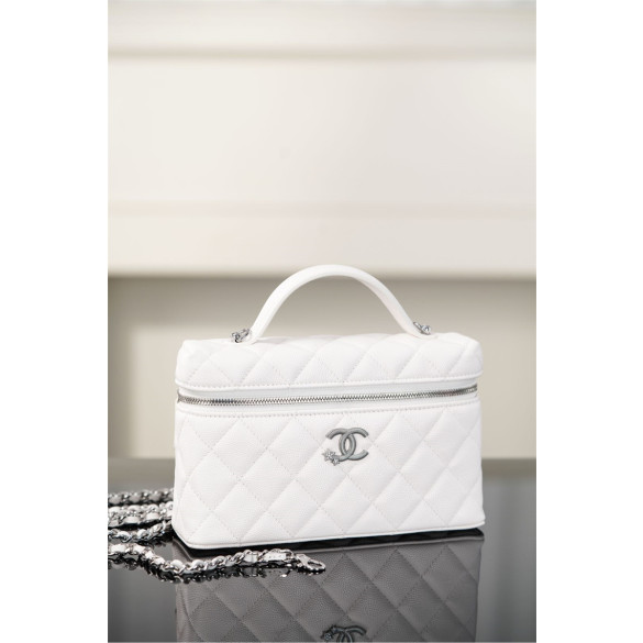 샤넬 25B 클래식 탑핸들 포쉐트 베니티백 실버 메탈 화이트