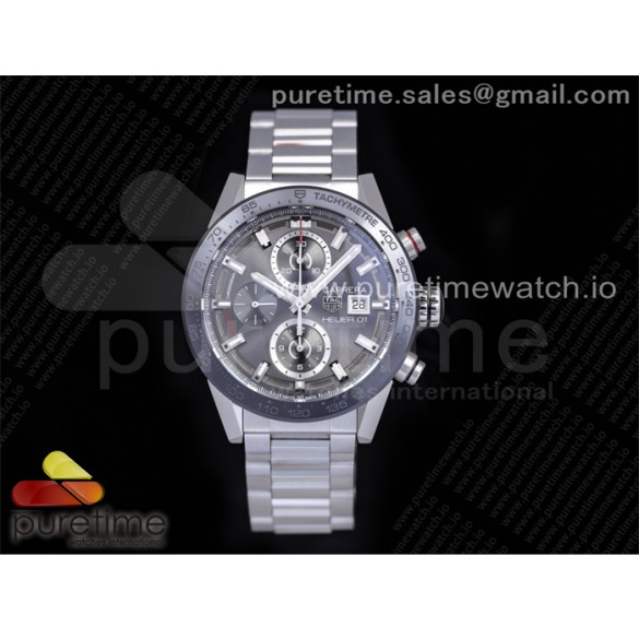 XF공장 칼리버호이어 그레이다이얼 43MM Calibre Heuer 01 Chrono SS XF 1_1 Best Edition Gray Dial on SS Bracelet Strap A1887