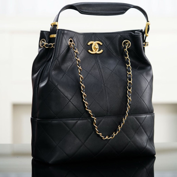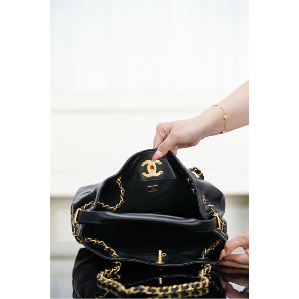 샤넬 25A 카프스킨 골드메탈 쇼핑백